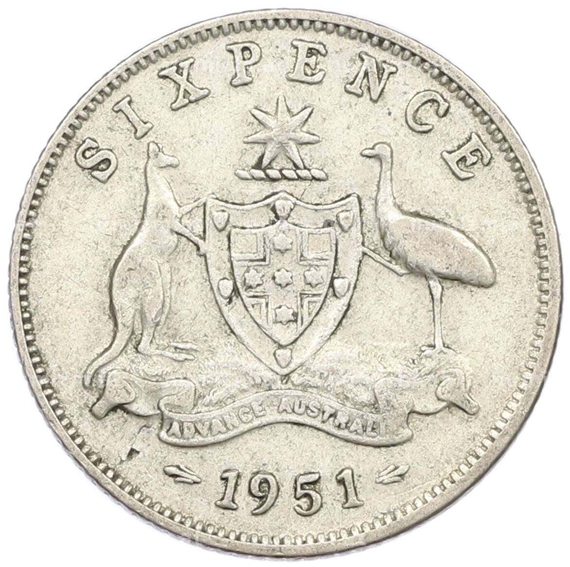 Монета 6 пенсов 1951 года Австралия (Артикул: M2-79642): подробные характеристики, качественные фотографии в высоком разрешении, низкая цена.