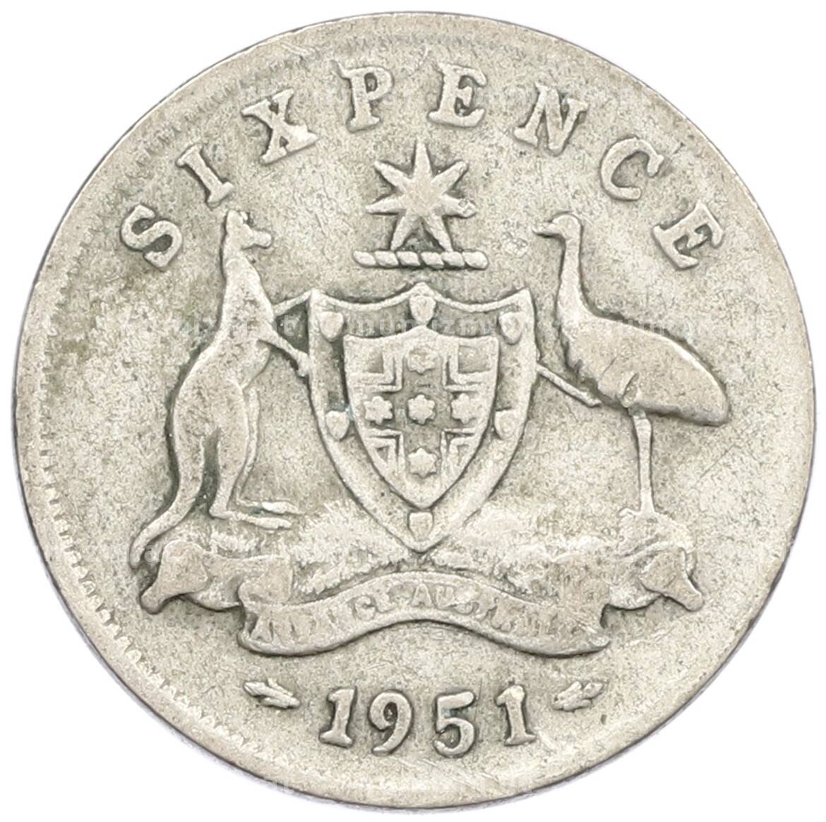 Купить 6 пенсов 1951 года Австралия по привлекательной цене можно в нашем интернет-магазине — Вам достаточно оформить заказ на сайте. Все монеты, представленные в каталоге, находятся в наличии на нашем складе.