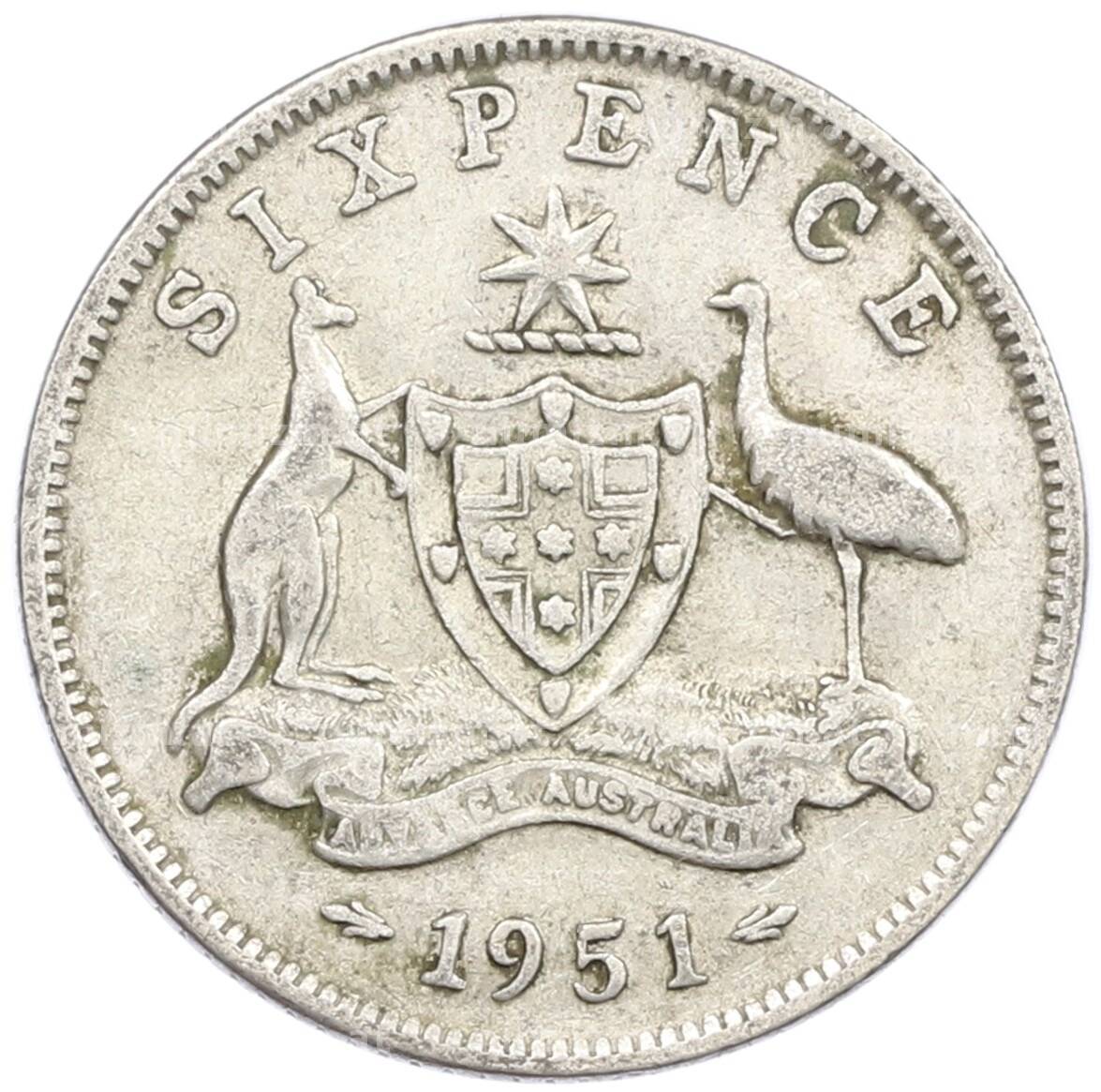 Монета 6 пенсов 1951 года Австралия (Артикул: M2-79673): подробные характеристики, качественные фотографии в высоком разрешении, низкая цена.