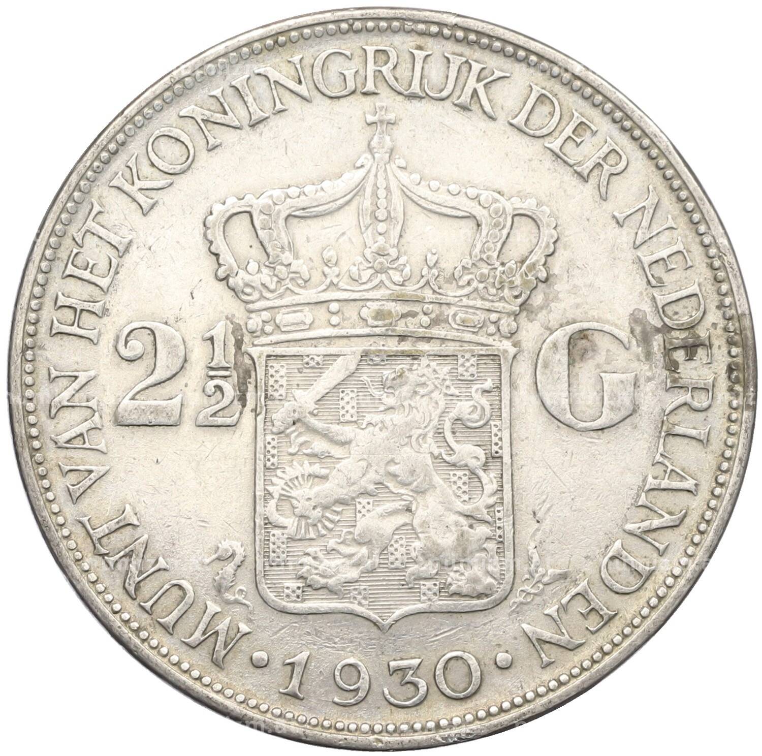 Монета 2 1/2 гульдена 1930 года Нидерланды (Артикул: M2-80039): подробные характеристики, качественные фотографии в высоком разрешении, низкая цена.