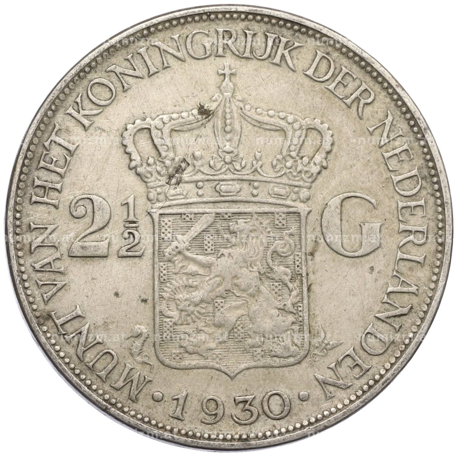 Монета 2 1/2 гульдена 1930 года Нидерланды (Артикул: M2-80047): подробные характеристики, качественные фотографии в высоком разрешении, низкая цена.