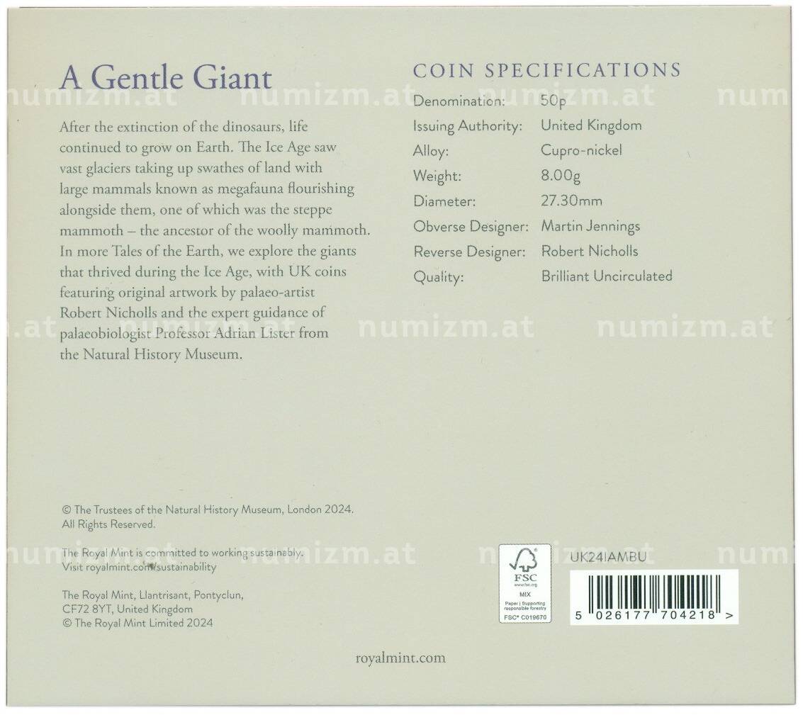 Купить 50 пенсов 2024 года Великобритания «Гиганты ледникового периода — Степной мамонт» (в буклете) по привлекательной цене можно в нашем интернет-магазине — Вам достаточно оформить заказ на сайте. Все монеты, представленные в каталоге, находятся в наличии на нашем складе.