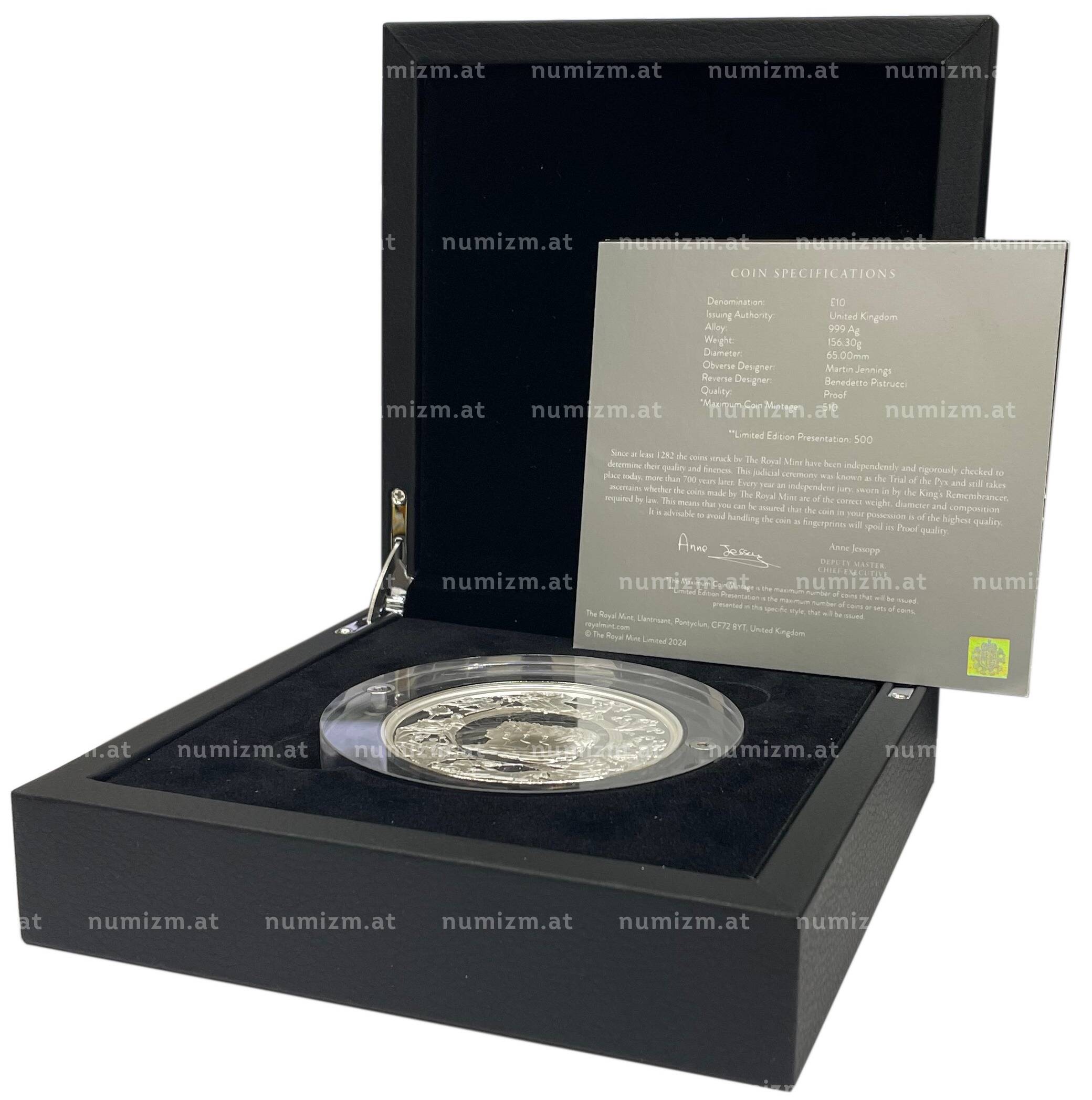 Монета в оригинальной подарочной коробке с сертификатом. Фактический вес монеты: 156,3 г (Ag999)
