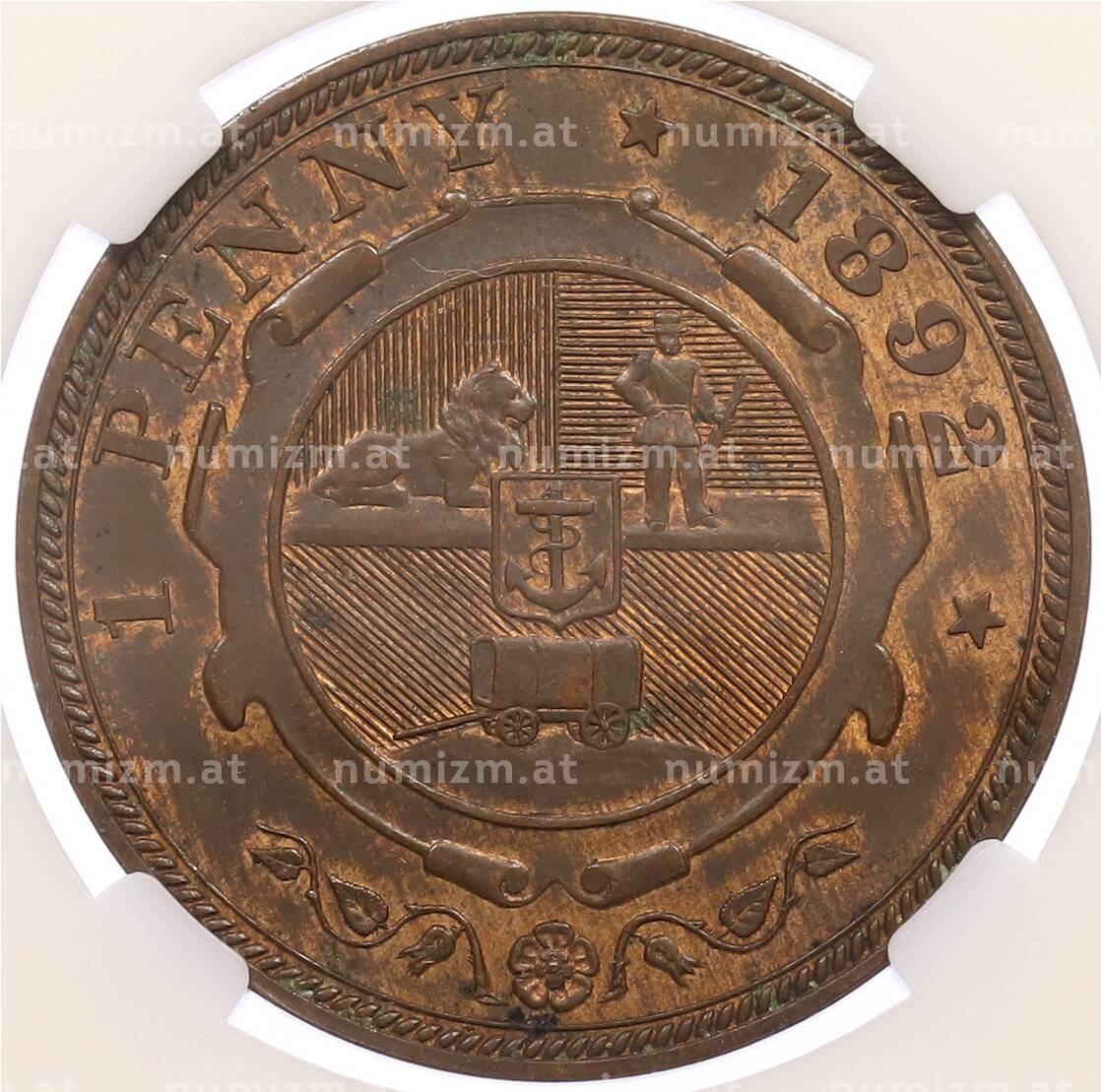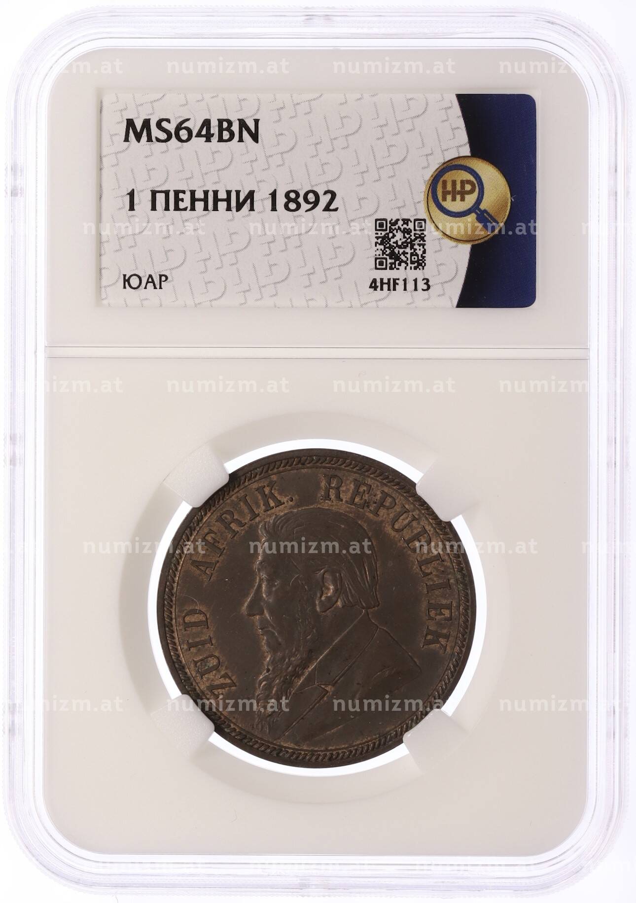 Купить 1 пенни 1892 года Южно-Африканская республика (Трансвааль) в слабе ННР (MS64BN) по привлекательной цене можно в нашем интернет-магазине — Вам достаточно оформить заказ на сайте. Все монеты, представленные в каталоге, находятся в наличии на нашем складе.