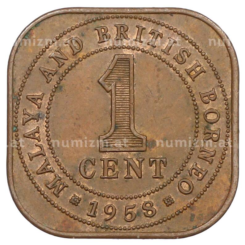 Монета 1 цент 1958 года Малайя и Британское Борнео (Артикул: M2-83779): подробные характеристики, качественные фотографии в высоком разрешении, низкая цена.