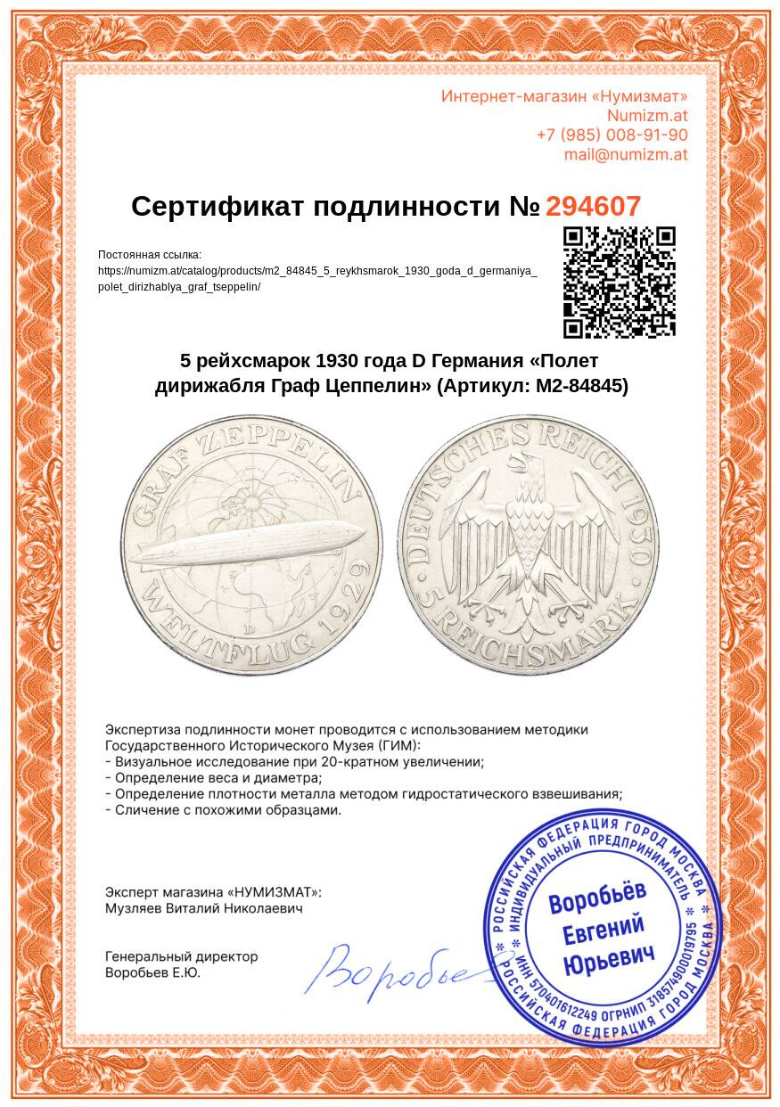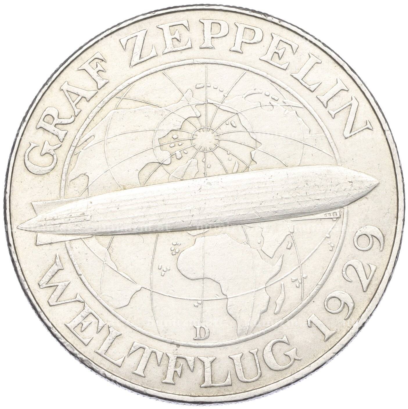 Купить 5 рейхсмарок 1930 года D Германия «Полет дирижабля Граф Цеппелин» по привлекательной цене можно в нашем интернет-магазине — Вам достаточно оформить заказ на сайте. Все монеты, представленные в каталоге, находятся в наличии на нашем складе.