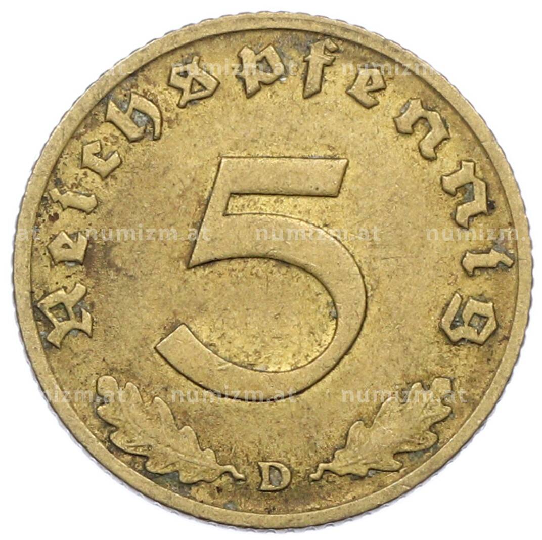 Монета 5 рейхспфеннигов 1938 года D Германия (Артикул: M2-84908): подробные характеристики, качественные фотографии в высоком разрешении, низкая цена.