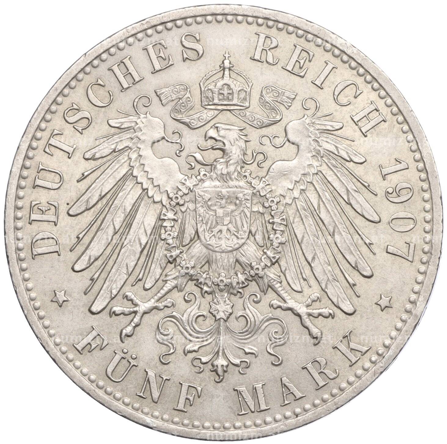 20.01.2025Интернет магазин «Нумизмат» предлагает приобрести 5 марок 1907 года Германия (Бавария).
