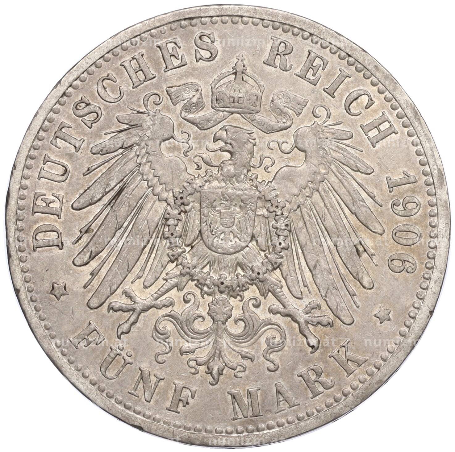 20.01.2025Интернет магазин «Нумизмат» предлагает приобрести 5 марок 1906 года Германия (Пруссия).