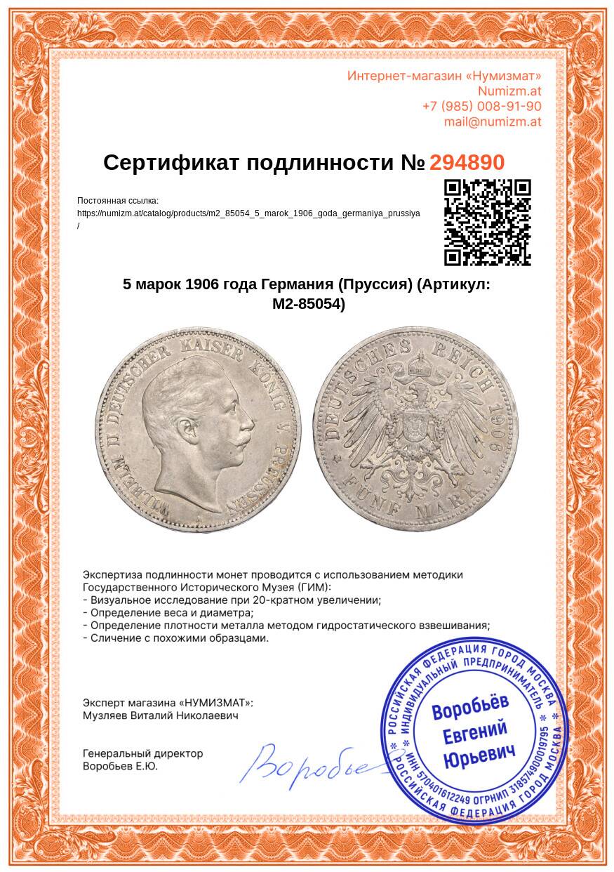 Купить 5 марок 1906 года Германия (Пруссия) по привлекательной цене можно в нашем интернет-магазине — Вам достаточно оформить заказ на сайте. Все монеты, представленные в каталоге, находятся в наличии на нашем складе.