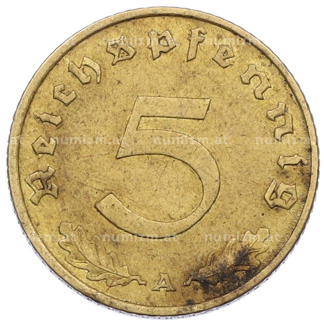 Монета 5 рейхспфеннигов 1938 года A Германия (Артикул: M2-85086): подробные характеристики, качественные фотографии в высоком разрешении, низкая цена.