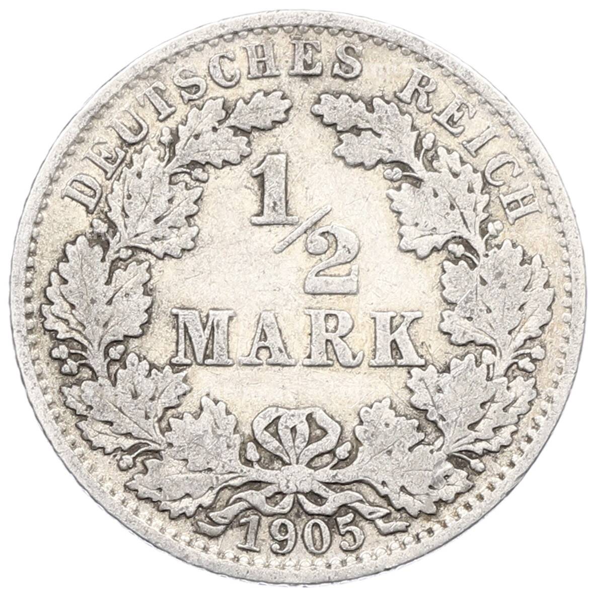 Монета 1/2 марки 1905 года A Германия (Артикул: M2-85329): подробные характеристики, качественные фотографии в высоком разрешении, низкая цена.
