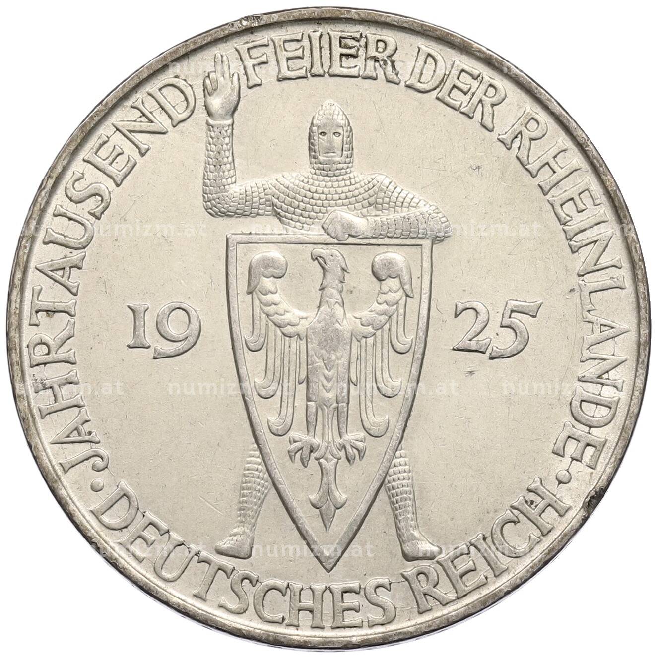 Интернет магазин «Нумизмат» предлагает приобрести 5 рейхсмарок 1925 года D Германия «Тысячелетие Рейнланда».