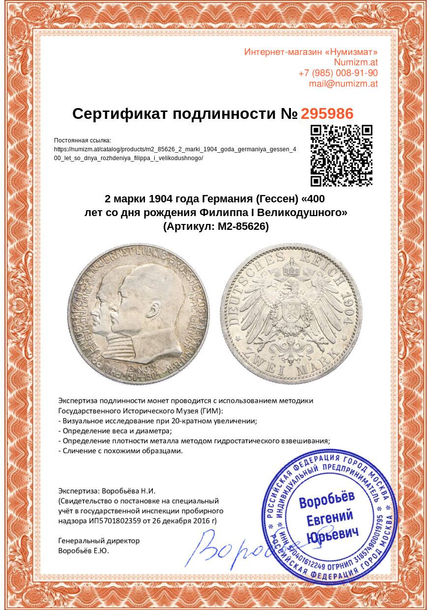 20.01.2025Интернет магазин «Нумизмат» предлагает приобрести 2 марки 1904 года Германия (Гессен) «400 лет со дня рождения Филиппа I Великодушного».