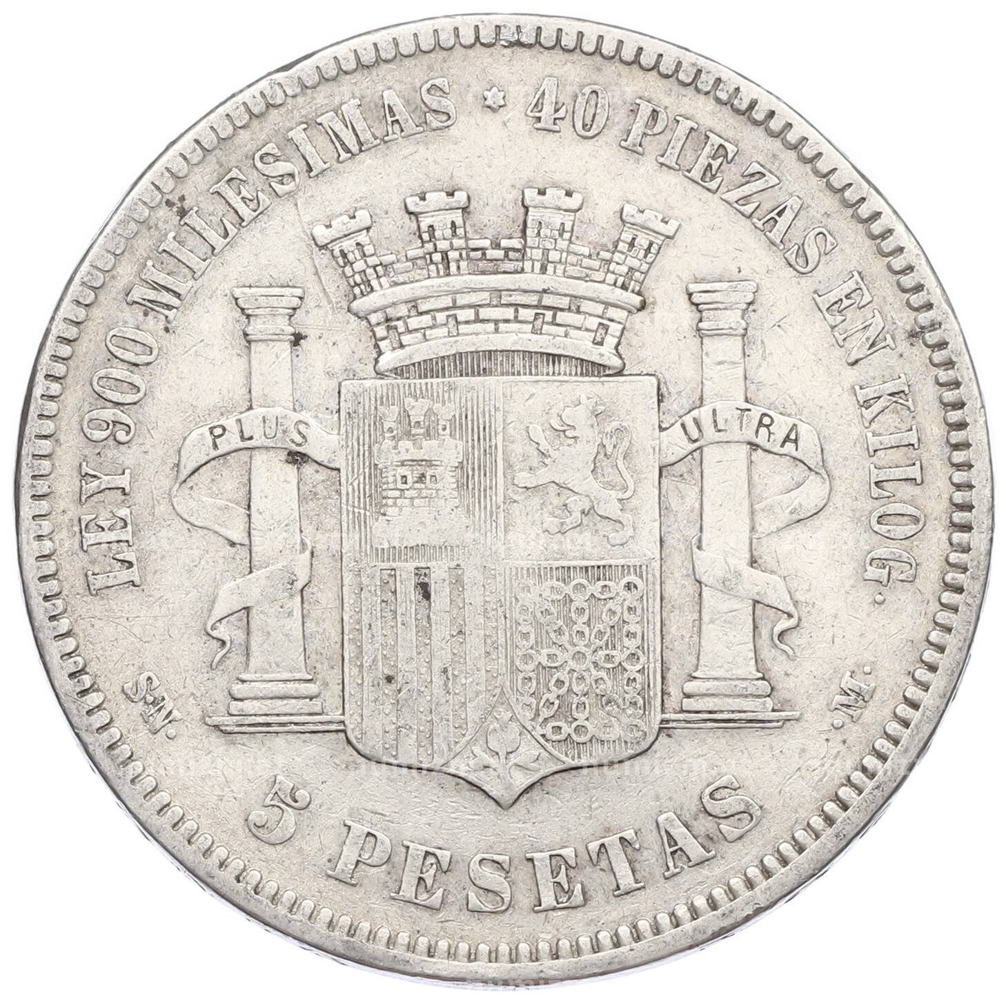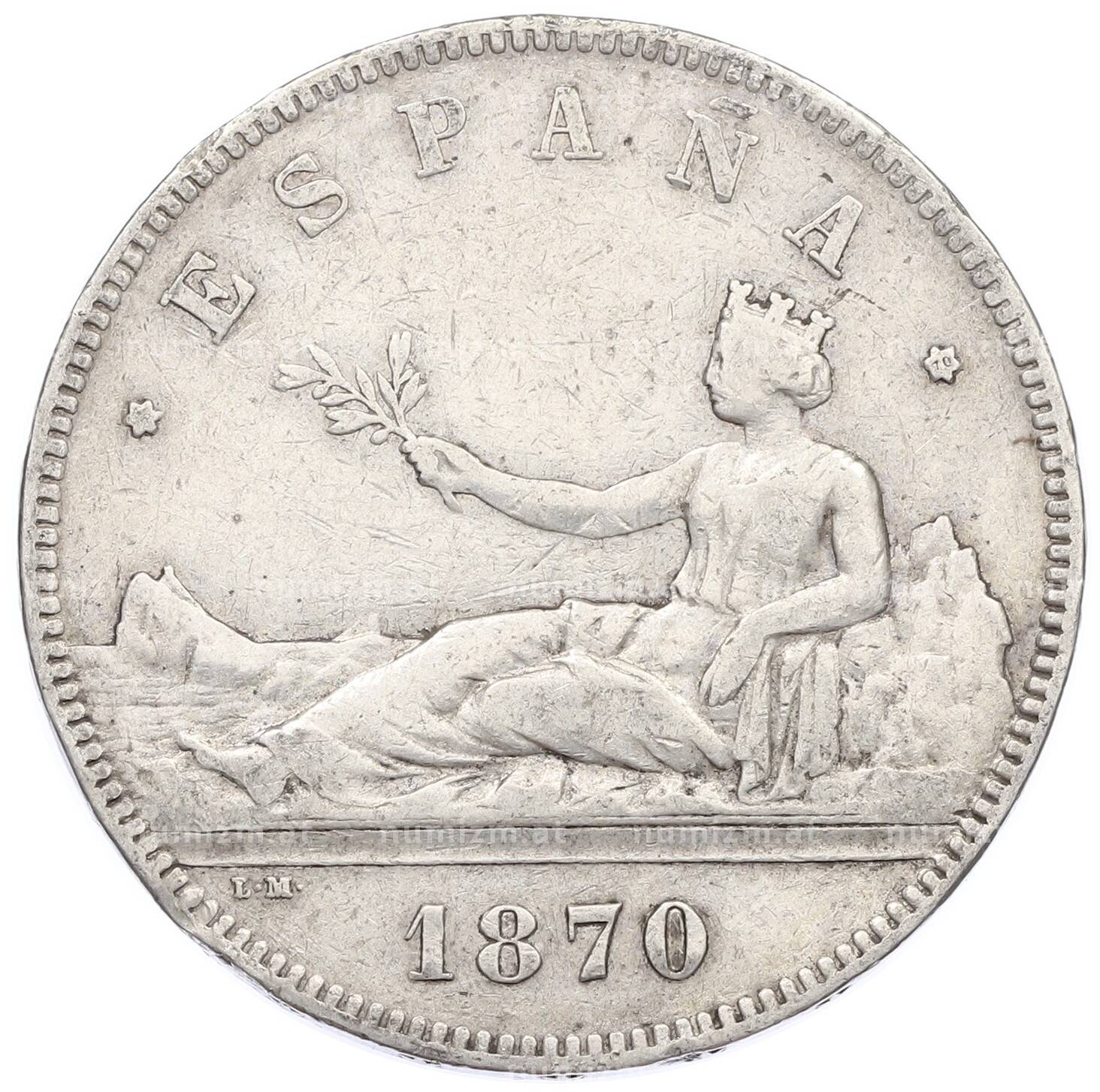 Монета 5 песет 1870 года Испания (Артикул: M2-85921): подробные характеристики, качественные фотографии в высоком разрешении, низкая цена.
