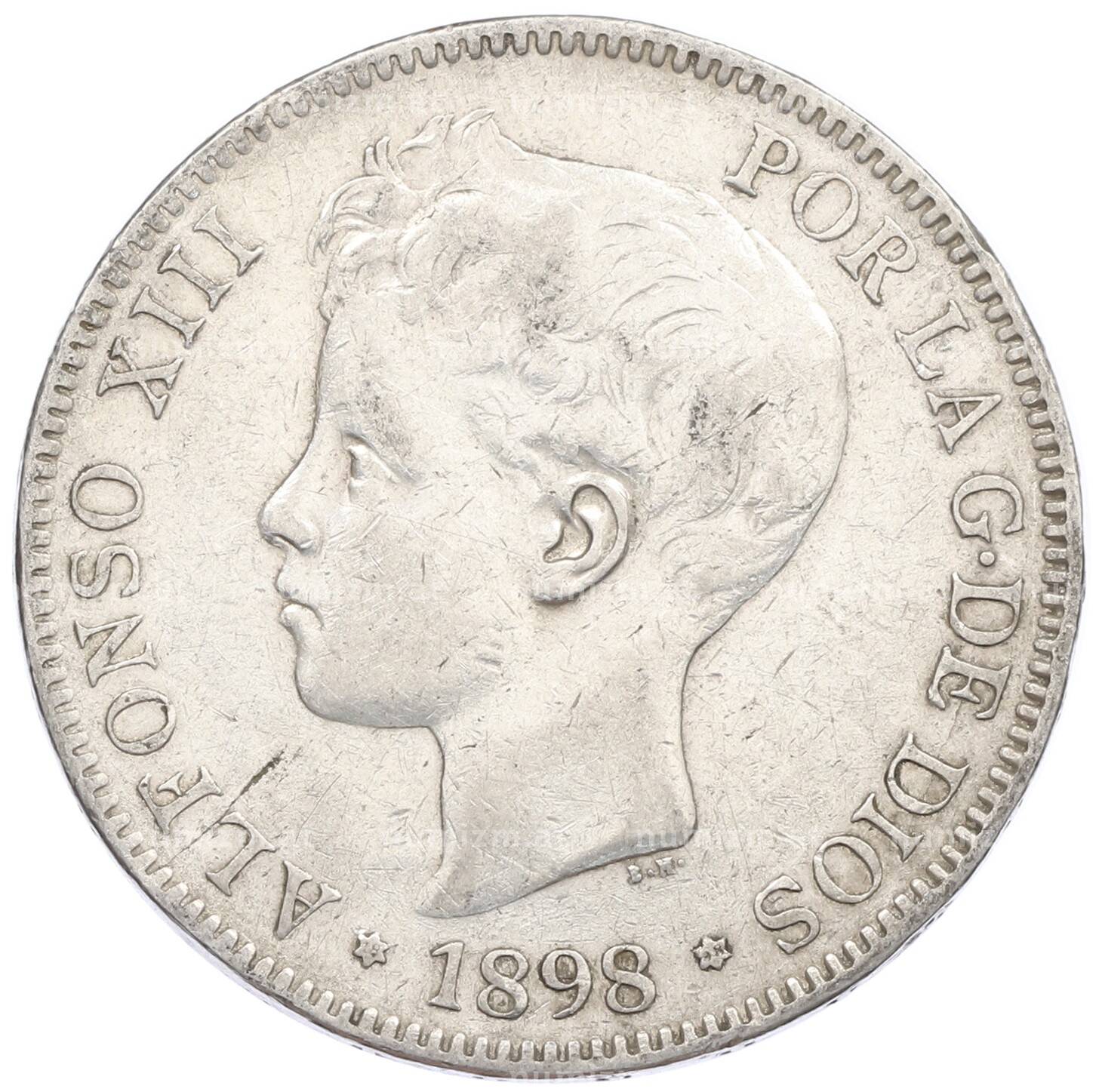Купить 5 песет 1898 года Испания по привлекательной цене можно в нашем интернет-магазине — Вам достаточно оформить заказ на сайте. Все монеты, представленные в каталоге, находятся в наличии на нашем складе.