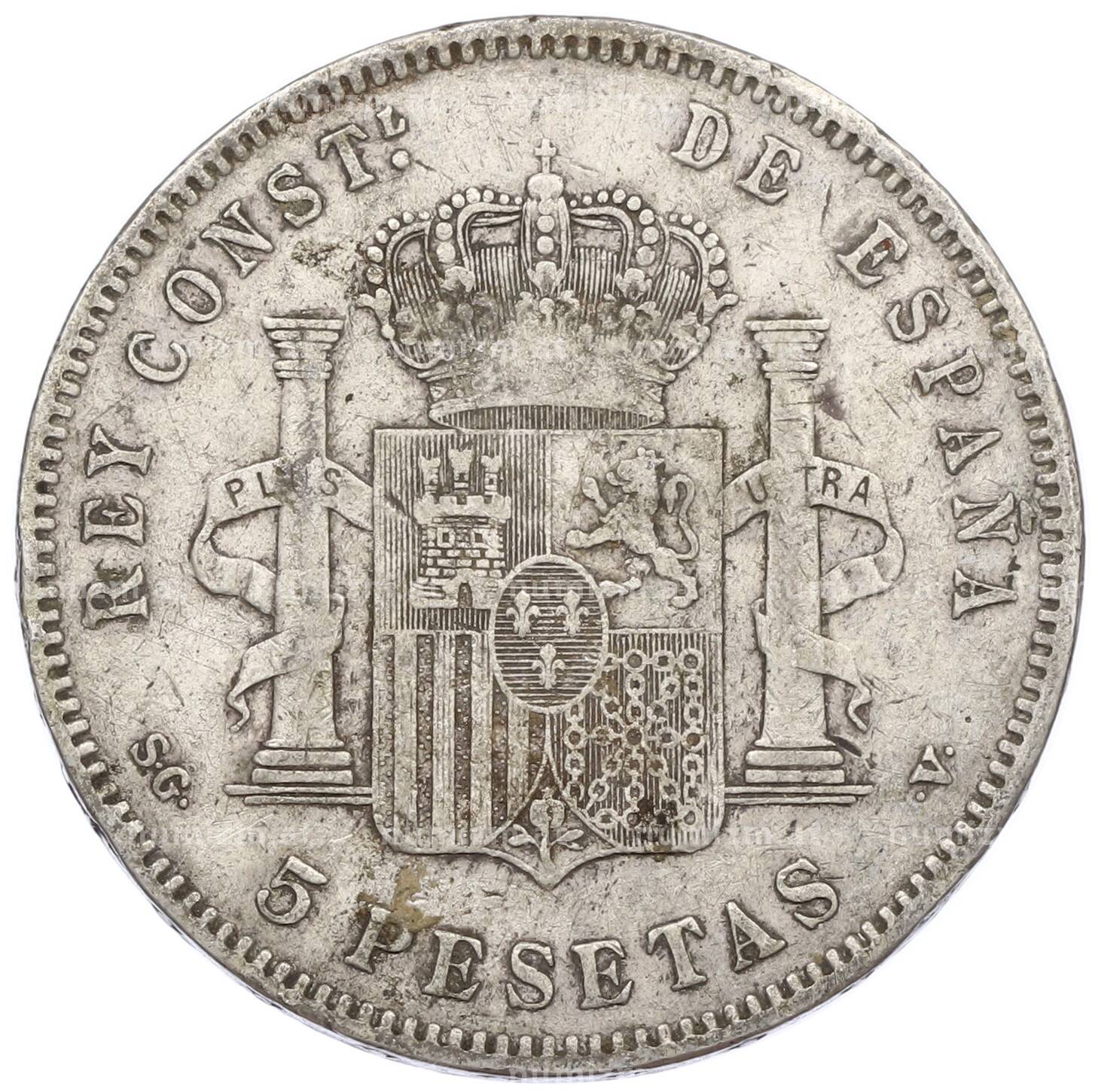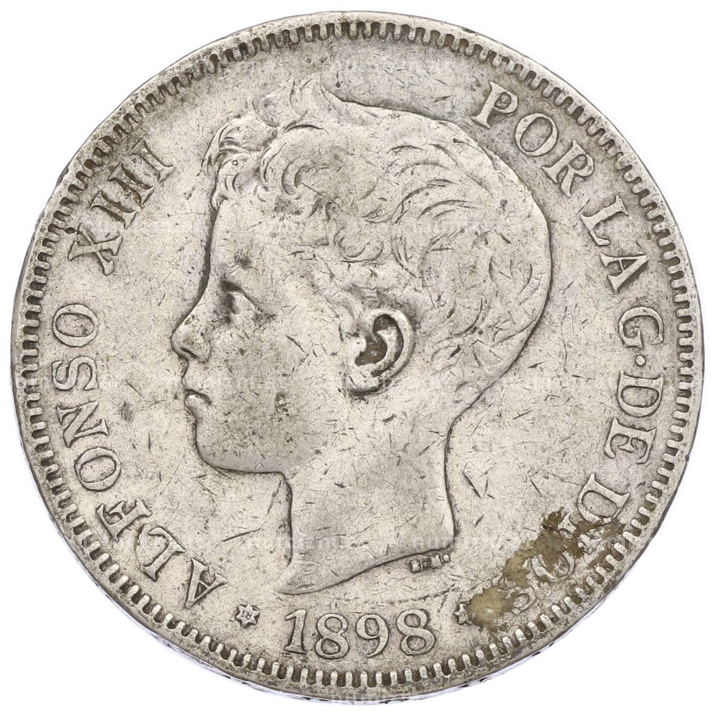 Монета 5 песет 1898 года Испания (Артикул: M2-85929): подробные характеристики, качественные фотографии в высоком разрешении, низкая цена.
