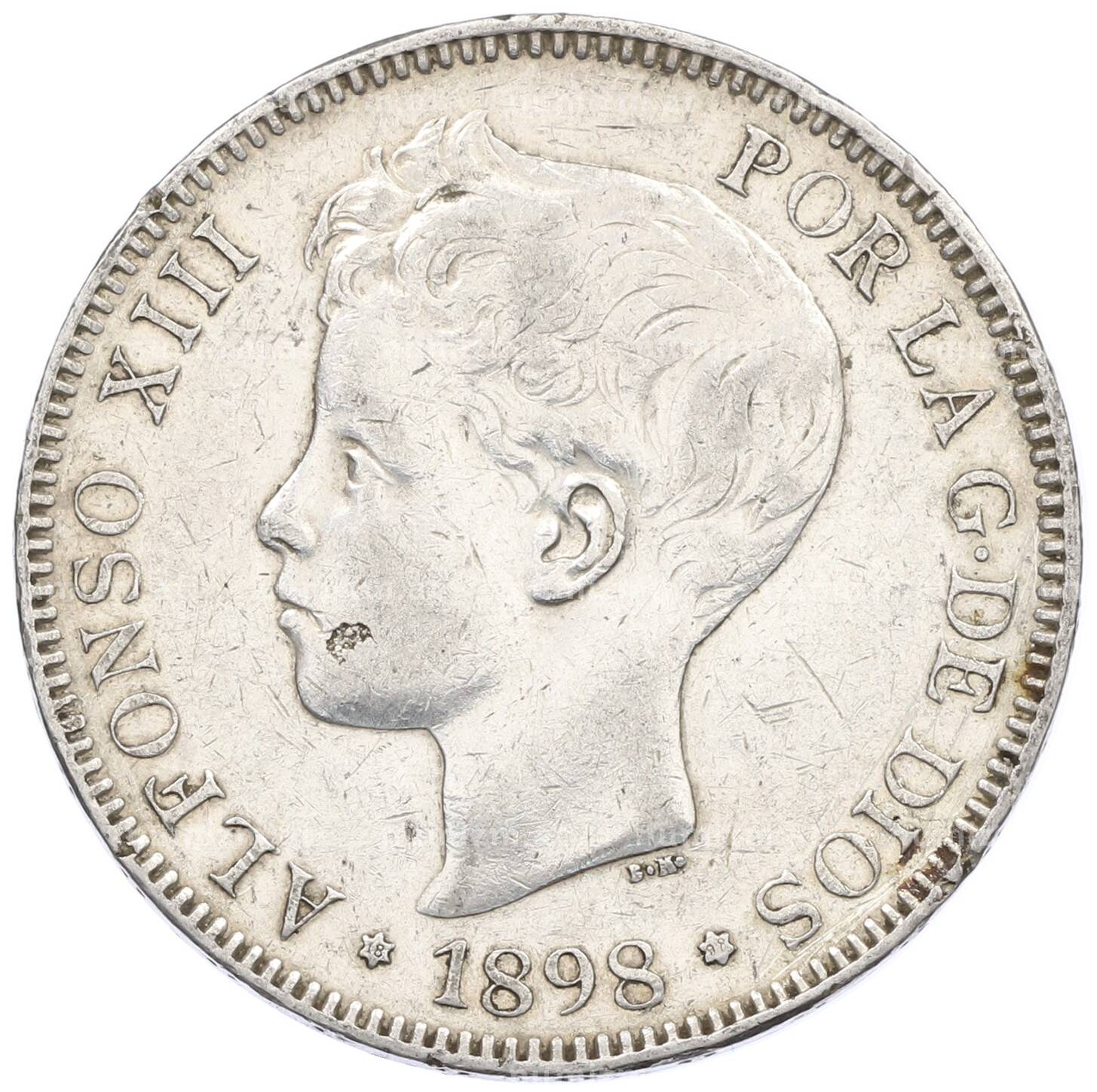 Купить 5 песет 1898 года Испания по привлекательной цене можно в нашем интернет-магазине — Вам достаточно оформить заказ на сайте. Все монеты, представленные в каталоге, находятся в наличии на нашем складе.