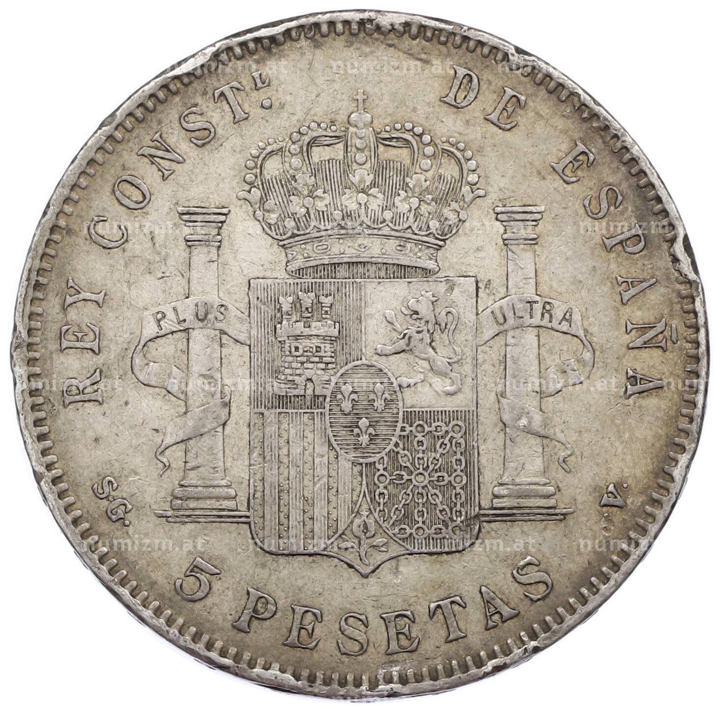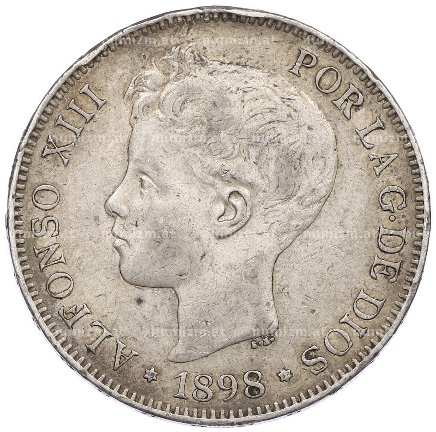 Монета 5 песет 1898 года Испания (Артикул: M2-85939): подробные характеристики, качественные фотографии в высоком разрешении, низкая цена.