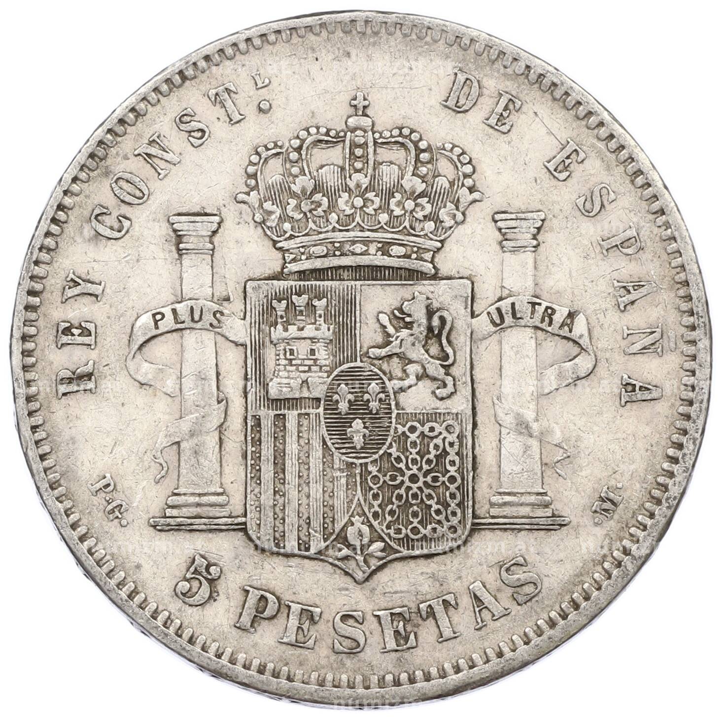 Монета 5 песет 1891 года Испания (Артикул: M2-85955): подробные характеристики, качественные фотографии в высоком разрешении, низкая цена.