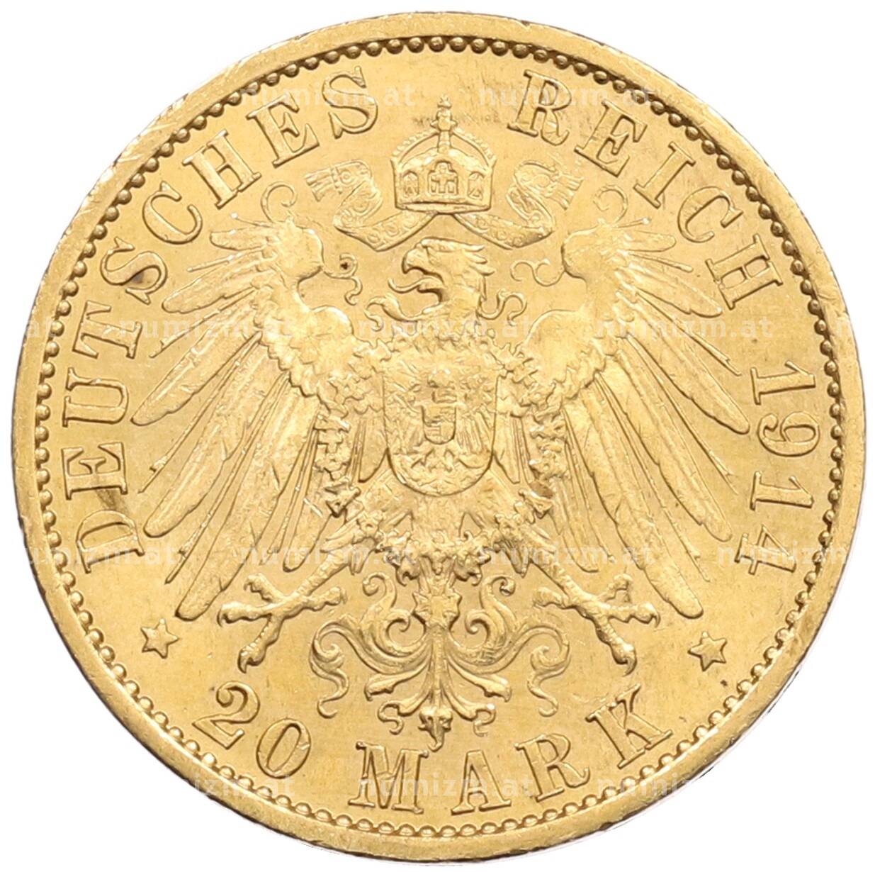 20.01.2025Интернет магазин «Нумизмат» предлагает приобрести 20 марок 1914 года Германия (Пруссия).