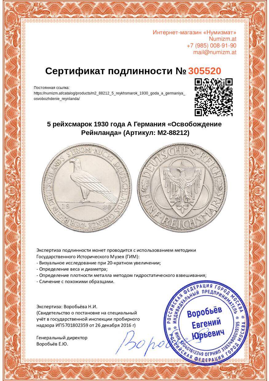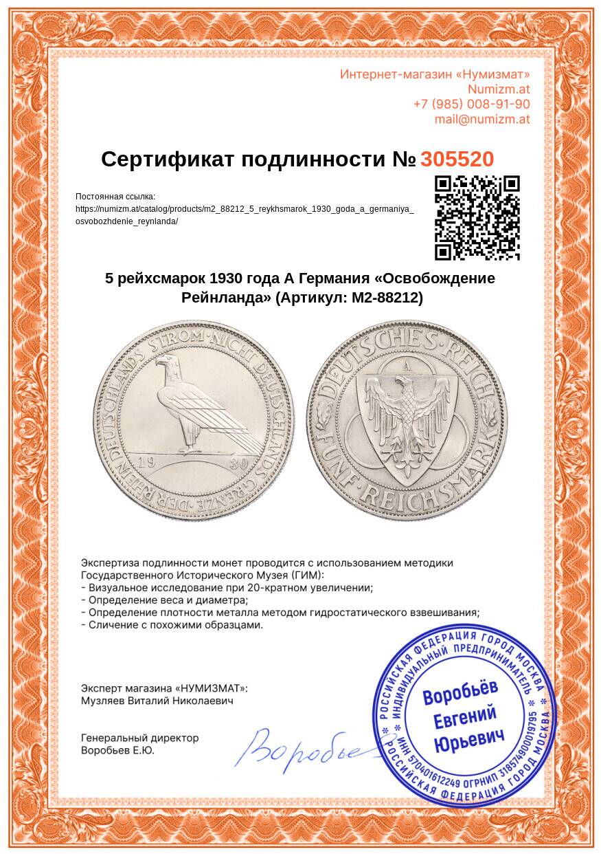 Купить 5 рейхсмарок 1930 года А Германия «Освобождение Рейнланда» по привлекательной цене можно в нашем интернет-магазине — Вам достаточно оформить заказ на сайте. Все монеты, представленные в каталоге, находятся в наличии на нашем складе.