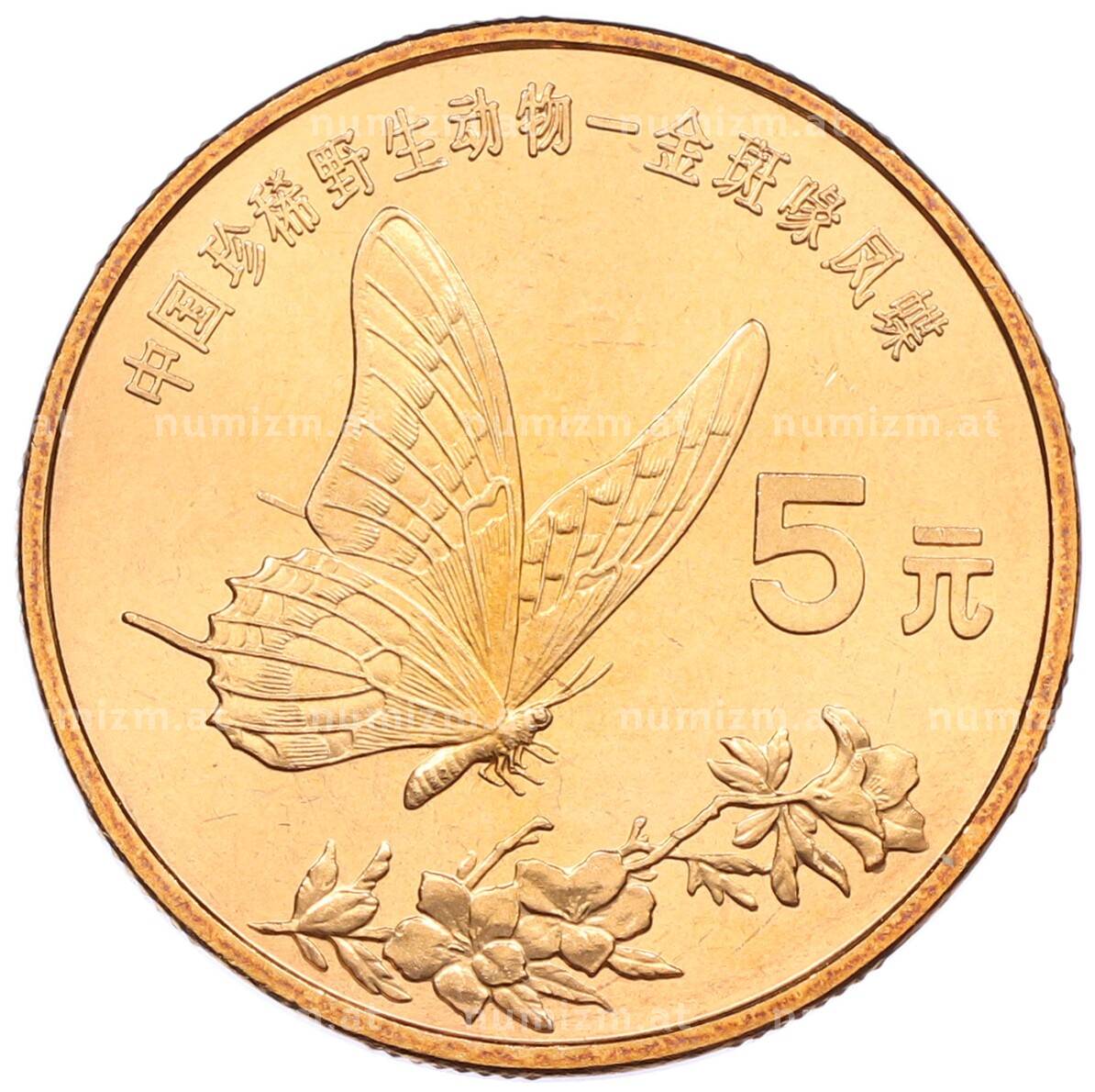 • Монета 5 юаней 1999 года Китай «Красная книга — Бабочка-парусник» (Артикул: M2-88249) — Фото №1 Монета 5 юаней 1999 года Китай «Красная книга — Бабочка-парусник» (Артикул: M2-88249) — Фото №2