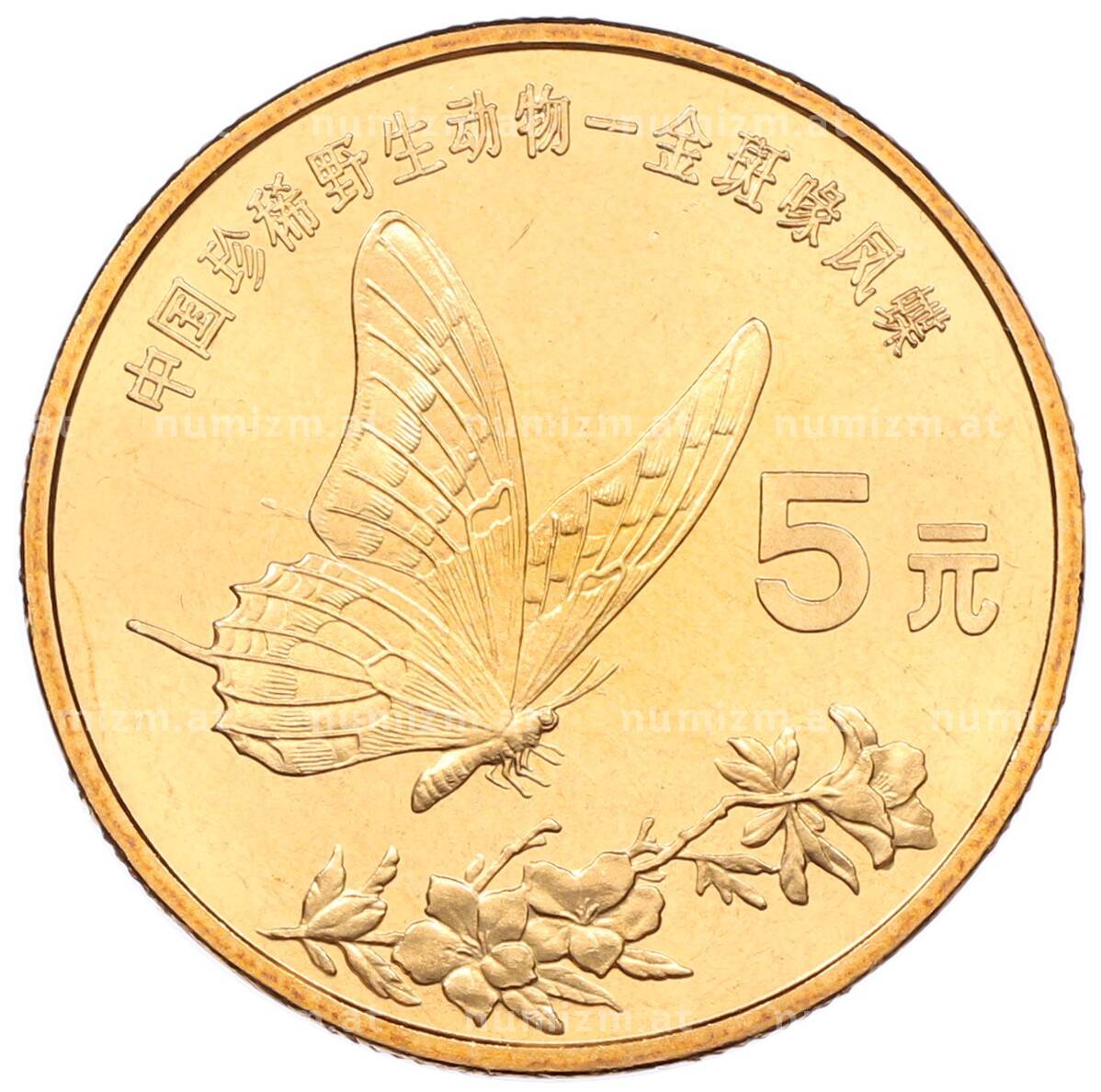 • Монета 5 юаней 1999 года Китай «Красная книга — Бабочка-парусник» (Артикул: M2-88254) — Фото №1 Монета 5 юаней 1999 года Китай «Красная книга — Бабочка-парусник» (Артикул: M2-88254) — Фото №2