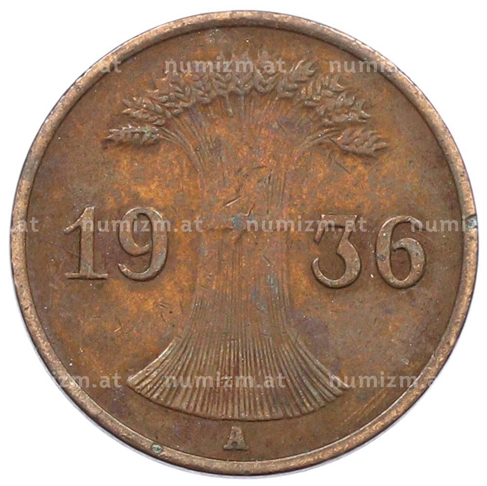 Монета 1 рейхспфенниг 1936 года A Германия (Артикул: M2-88542): подробные характеристики, качественные фотографии в высоком разрешении, низкая цена.