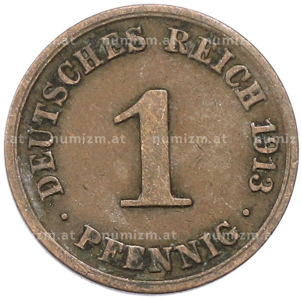 Монета 1 пфенниг 1913 года A Германия (Артикул: M2-88981): подробные характеристики, качественные фотографии в высоком разрешении, низкая цена.
