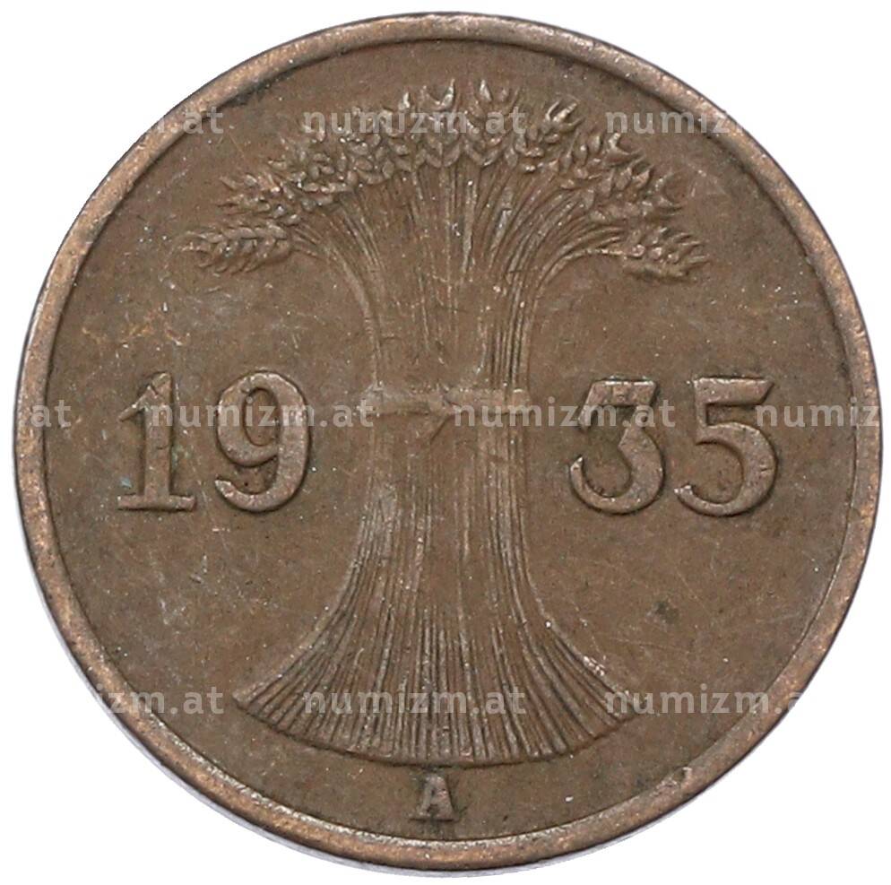 Монета 1 рейхспфенниг 1935 года A Германия (Артикул: M2-89027): подробные характеристики, качественные фотографии в высоком разрешении, низкая цена.