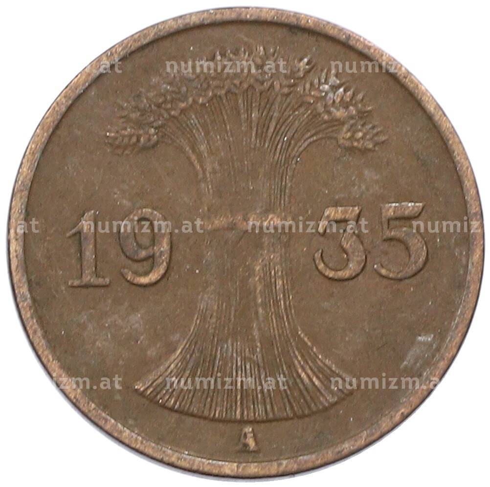 Купить 1 рейхспфенниг 1935 года A Германия по привлекательной цене можно в нашем интернет-магазине — Вам достаточно оформить заказ на сайте. Все монеты, представленные в каталоге, находятся в наличии на нашем складе.