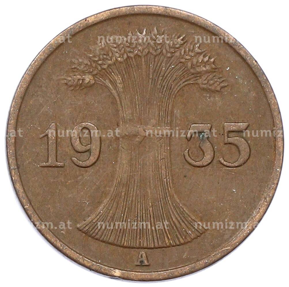 Монета 1 рейхспфенниг 1935 года A Германия (Артикул: M2-89622): подробные характеристики, качественные фотографии в высоком разрешении, низкая цена.