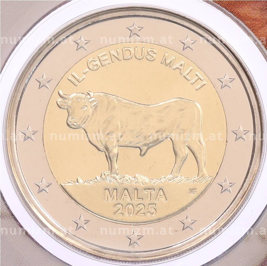 20.01.2025Интернет магазин «Нумизмат» предлагает приобрести 2 евро 2025 года Мальта «Мальтийский бык» (в буклете).