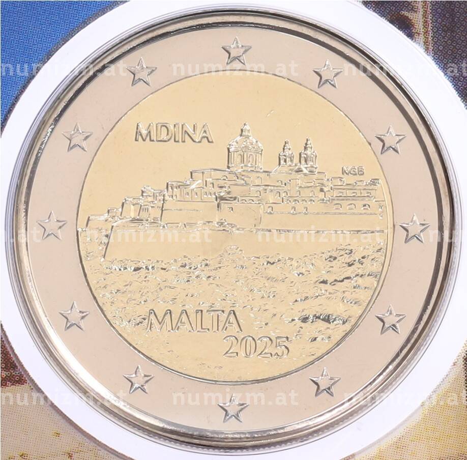 20.01.2025Интернет магазин «Нумизмат» предлагает приобрести 2 евро 2025 года Мальта «Мальтийские стены — Мдина» (в буклете).
