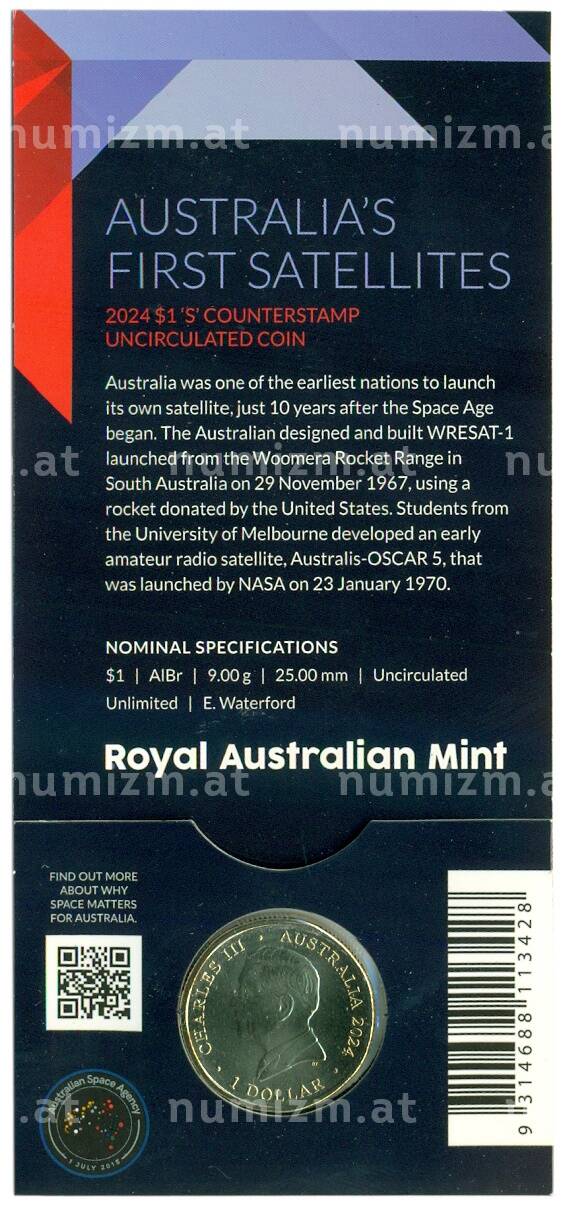 20.01.2025Интернет магазин «Нумизмат» предлагает приобрести 1 доллар 2024 года Австралия «Австралия в космосе — Спутник-1» (в блистере).