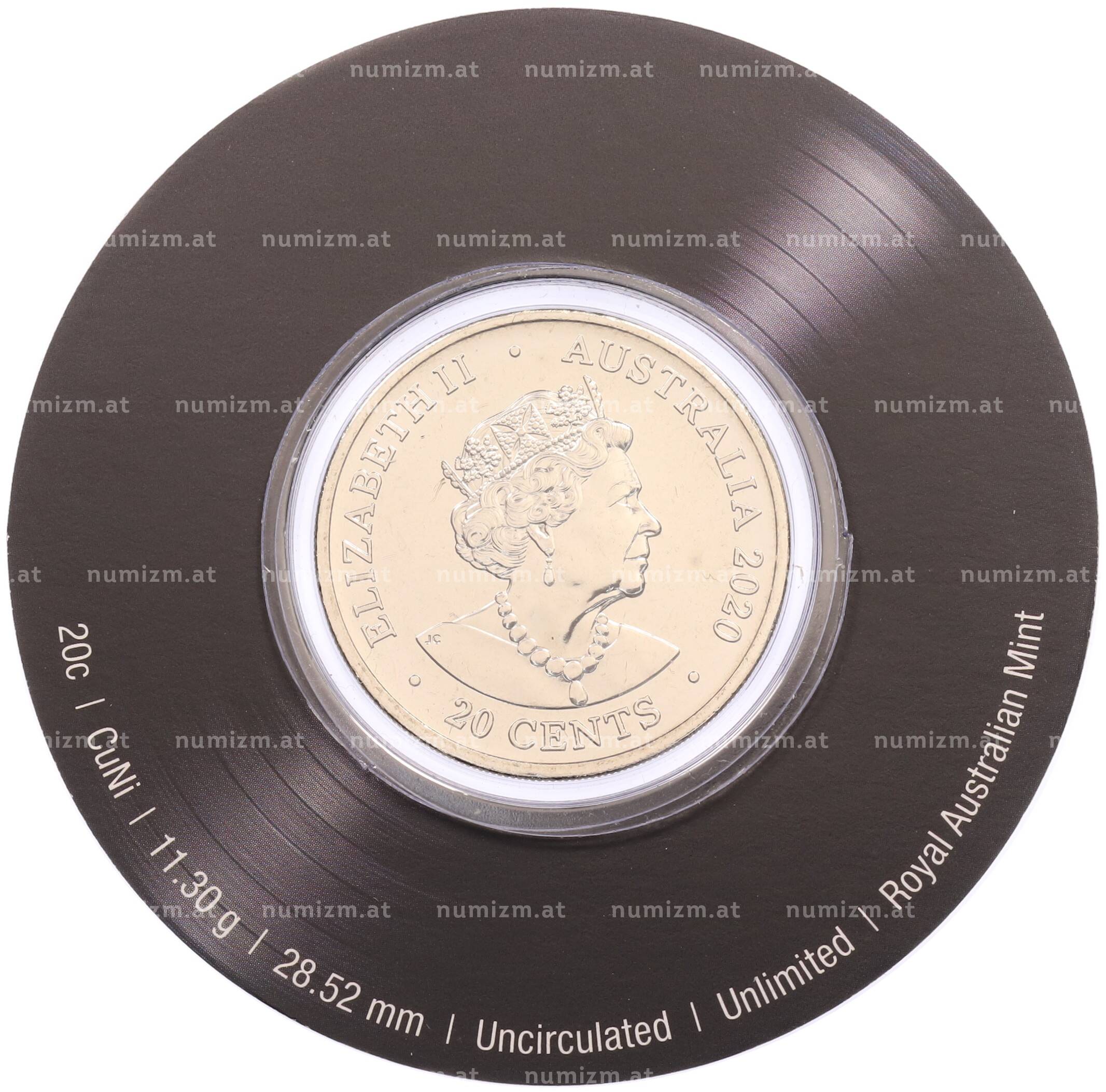 20.01.2025Интернет магазин «Нумизмат» предлагает приобрести 20 центов 2020 года Австралия «45 лет группе AC/DC — альбом Back in Black».