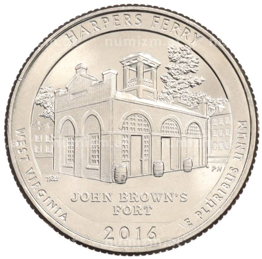 Интернет магазин «Нумизмат» предлагает приобрести 1/4 доллара (25 центов) 2016 года P США «Национальные парки — №33 Харперс Ферри».