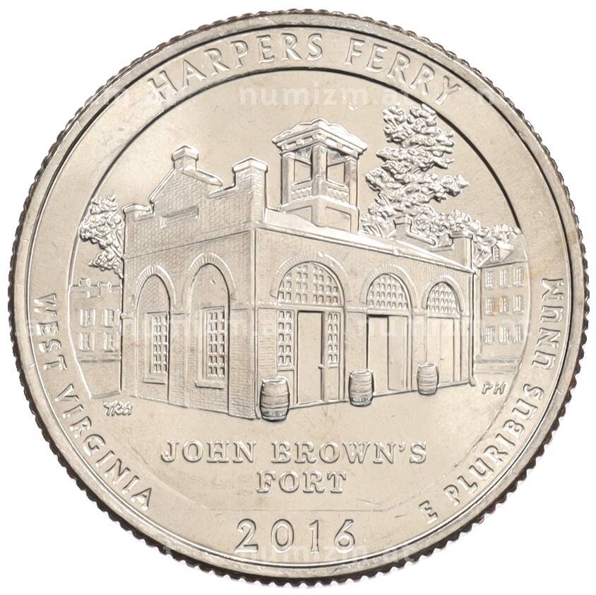 Интернет магазин «Нумизмат» предлагает приобрести 1/4 доллара (25 центов) 2016 года D США «Национальные парки — №33 Харперс Ферри».