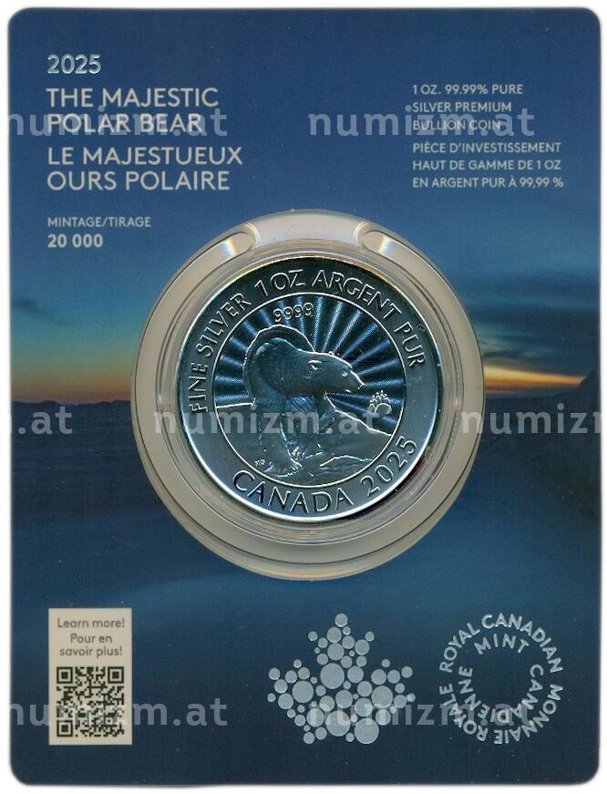 Купить 5 долларов 2025 года Канада «Величественный белый медведь» (в блистере) по привлекательной цене можно в нашем интернет-магазине — Вам достаточно оформить заказ на сайте. Все монеты, представленные в каталоге, находятся в наличии на нашем складе.