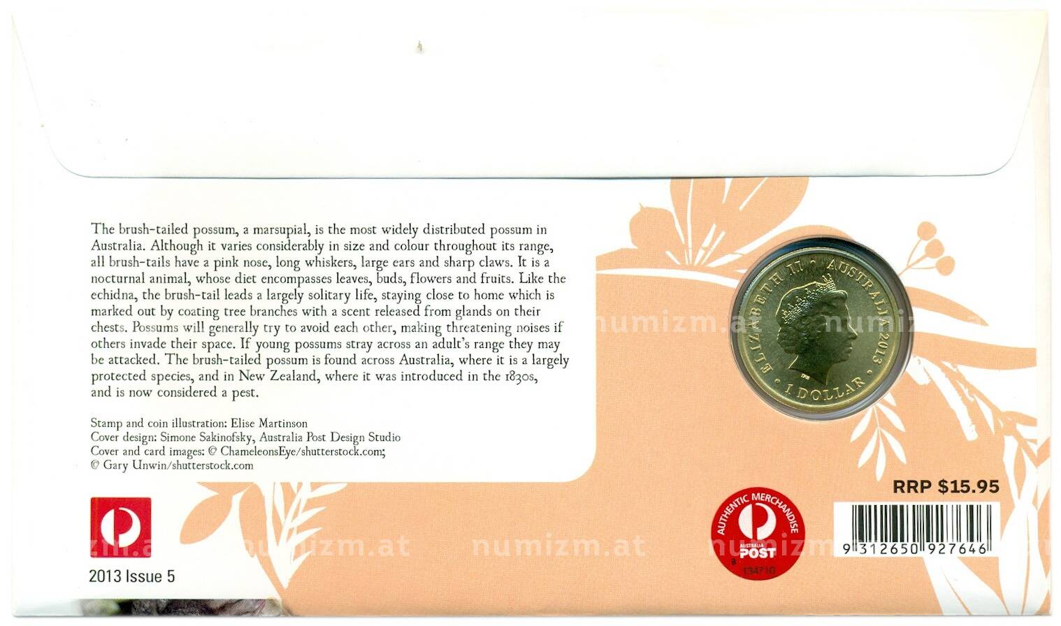 20.01.2025Интернет магазин «Нумизмат» предлагает приобрести 1 доллар 2013 года Австралия «Детеныши диких животных — Поссум» (в конверте с маркой).