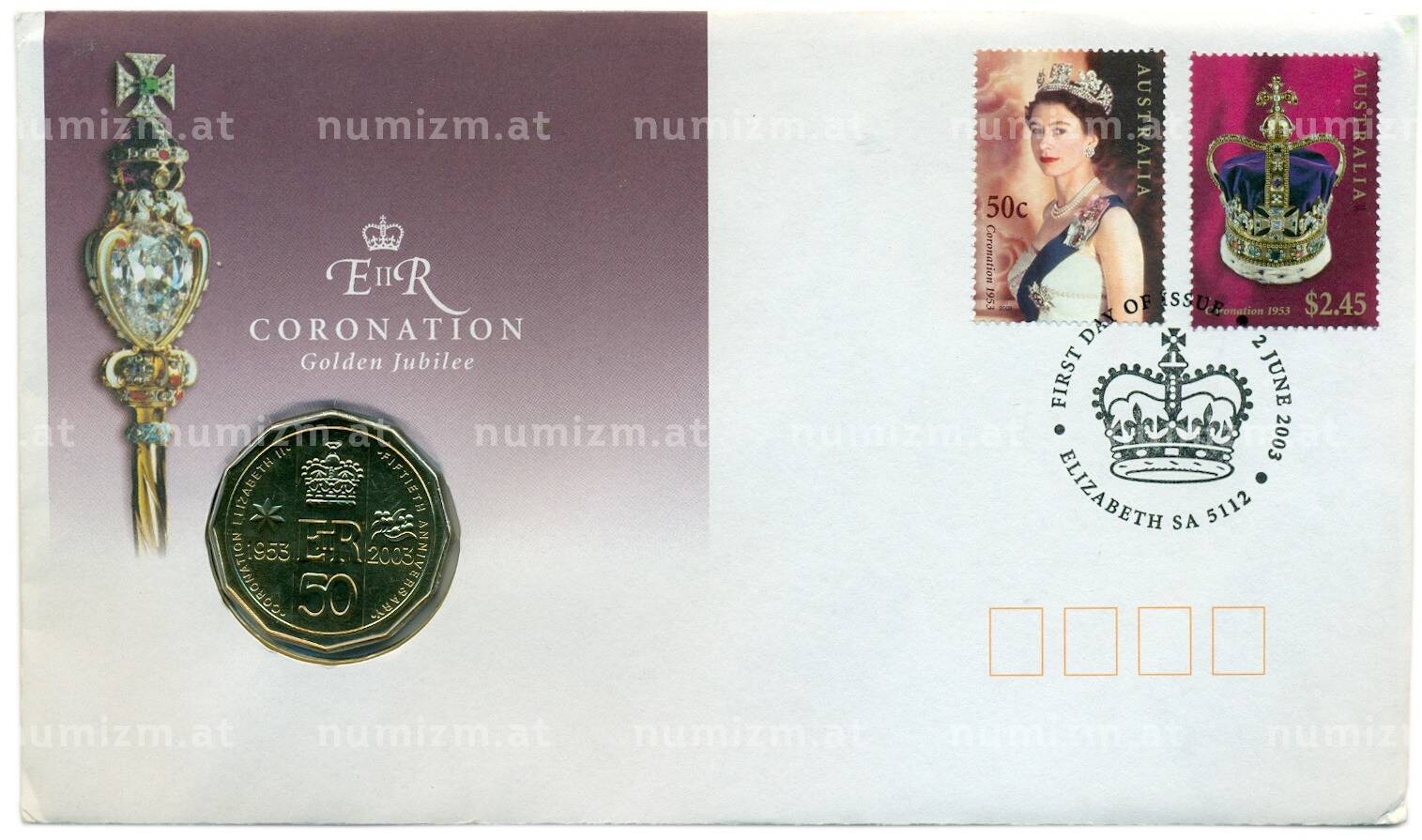 20.01.2025Интернет магазин «Нумизмат» предлагает приобрести 1 доллар 2003 года Австралия «Золотой юбилей коронации Елизаветы II» (в конверте с марками).