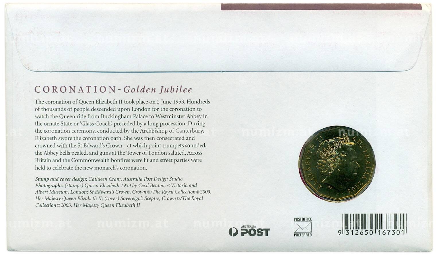 Купить 1 доллар 2003 года Австралия «Золотой юбилей коронации Елизаветы II» (в конверте с марками) по привлекательной цене можно в нашем интернет-магазине — Вам достаточно оформить заказ на сайте. Все монеты, представленные в каталоге, находятся в наличии на нашем складе.