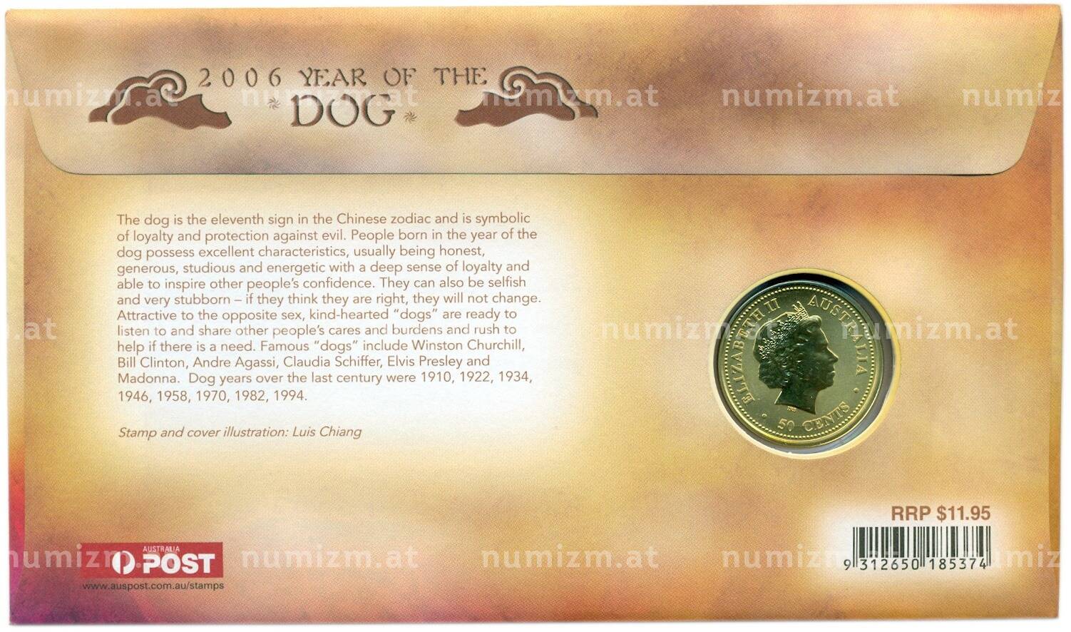 Купить 50 центов 2006 года Австралия «Китайский гороскоп — Год собаки» (в конверте с марками) по привлекательной цене можно в нашем интернет-магазине — Вам достаточно оформить заказ на сайте. Все монеты, представленные в каталоге, находятся в наличии на нашем складе.