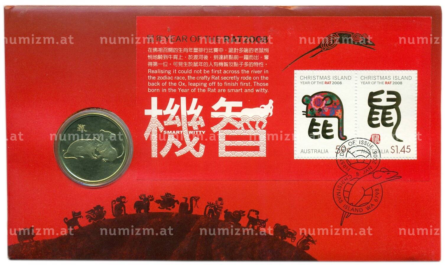 Купить 1 доллар 2008 года Австралия «Китайский гороскоп — Год мыши» (в конверте с марками) по привлекательной цене можно в нашем интернет-магазине — Вам достаточно оформить заказ на сайте. Все монеты, представленные в каталоге, находятся в наличии на нашем складе.