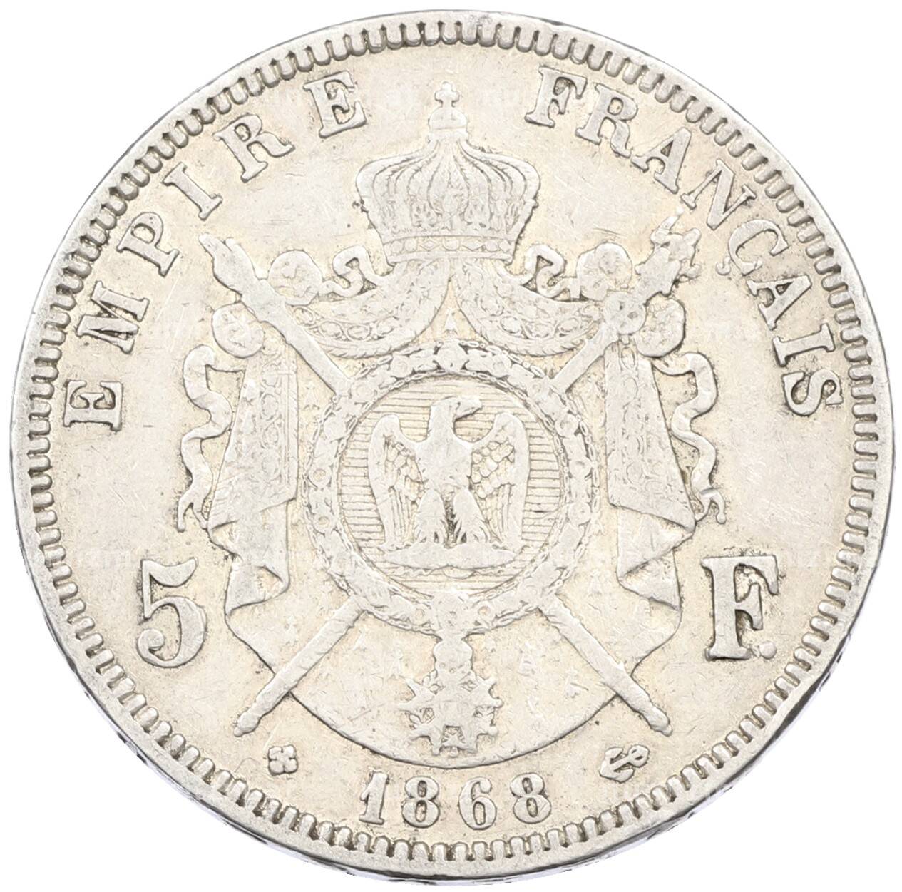 Купить 5 франков 1868 года BB Франция по привлекательной цене можно в нашем интернет-магазине — Вам достаточно оформить заказ на сайте. Все монеты, представленные в каталоге, находятся в наличии на нашем складе.