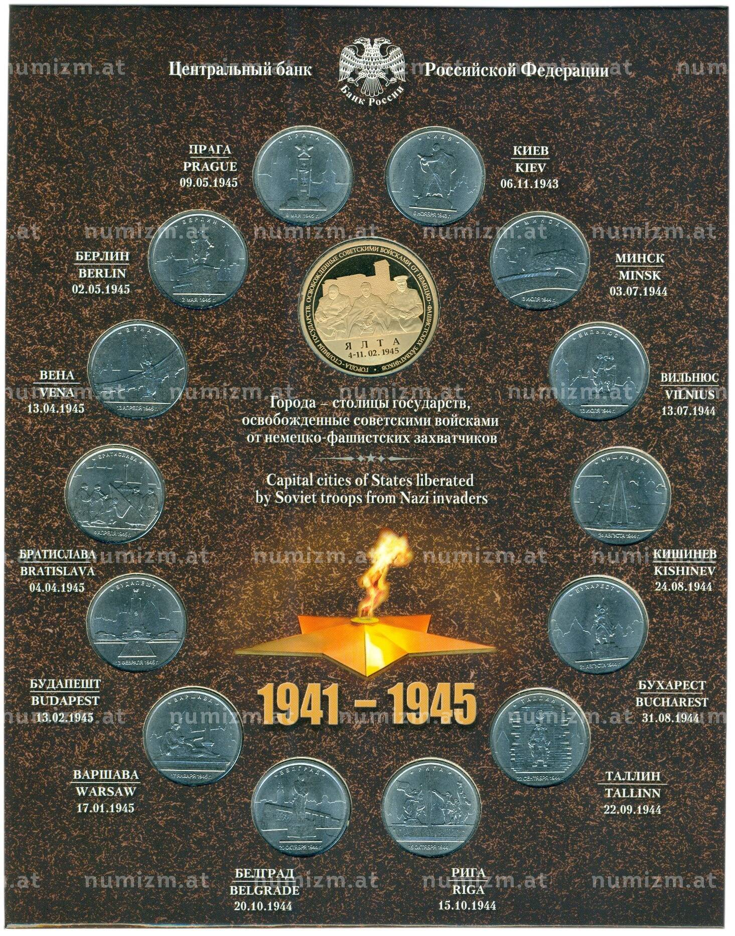 Купить Полный набор из 14 памятных монет 5 рублей 2016 года ММД «Освобожденные советскими войсками от немецко-фашистских захватчиков столицы государств» по привлекательной цене можно в нашем интернет-магазине — Вам достаточно оформить заказ на сайте. Все монеты, представленные в каталоге, находятся в наличии на нашем складе.