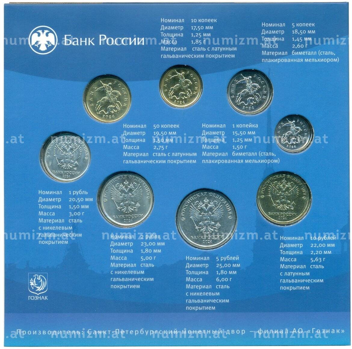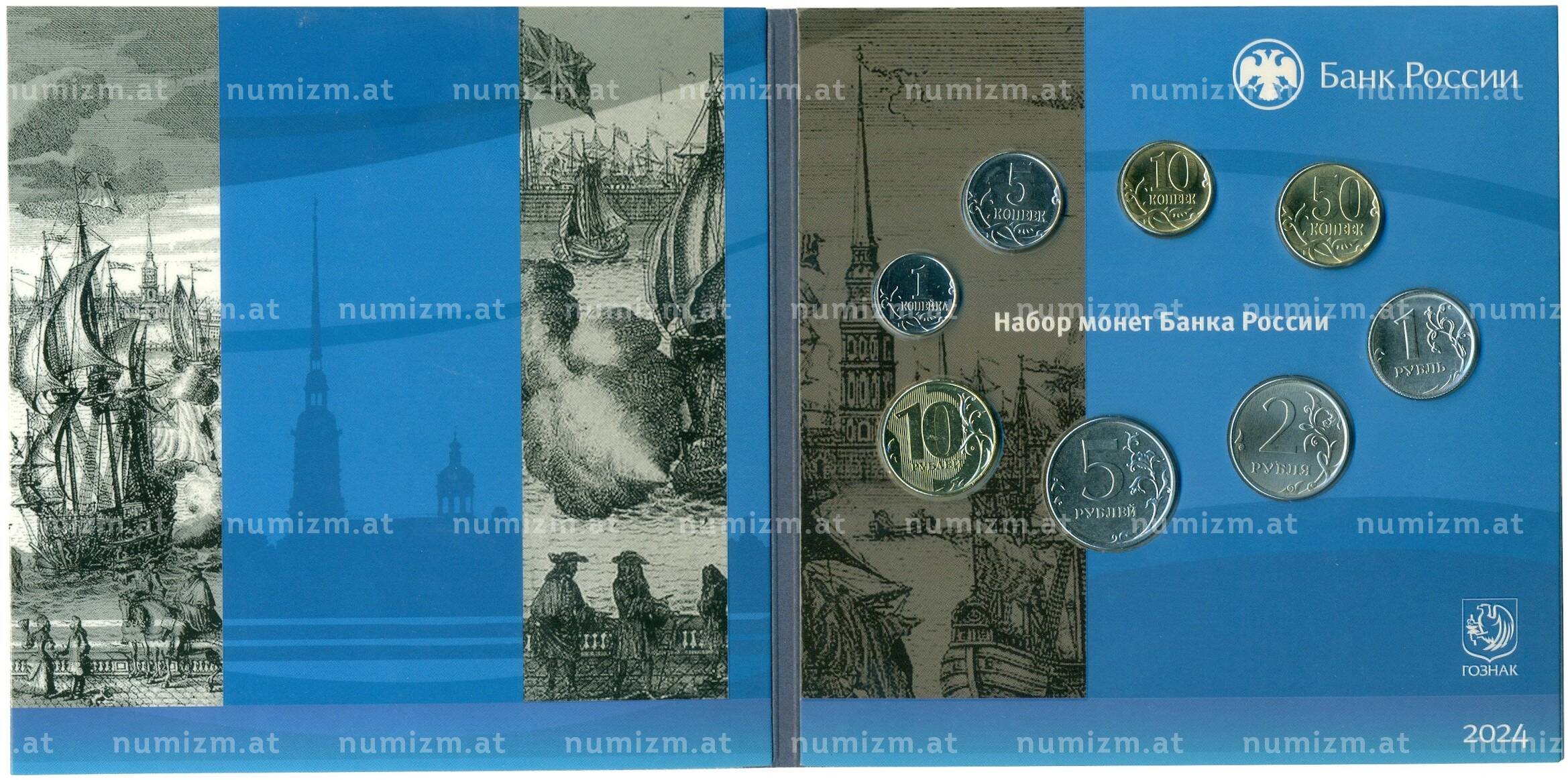 20.01.2025Интернет магазин «Нумизмат» предлагает приобрести Годовой набор монет Банка России 2024 года СПМД (Разновидность монеты 1 рубль — монограмма СПМД дальше от лапы орла).