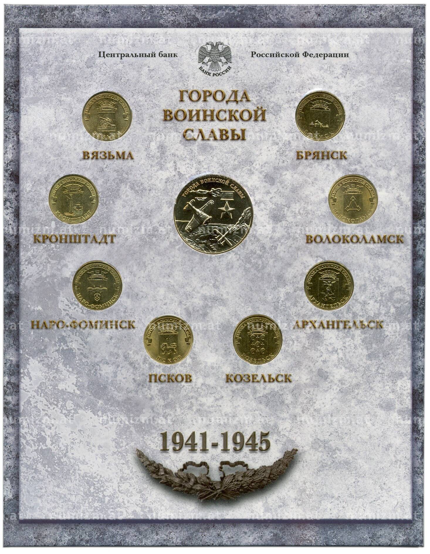 Купить Набор из 8 монет 10 рублей 2013 года «Города Воинской славы» Выпуск 3 — АКЦИЯ (Для заказов от 10.000 р) по привлекательной цене можно в нашем интернет-магазине — Вам достаточно оформить заказ на сайте. Все монеты, представленные в каталоге, находятся в наличии на нашем складе.