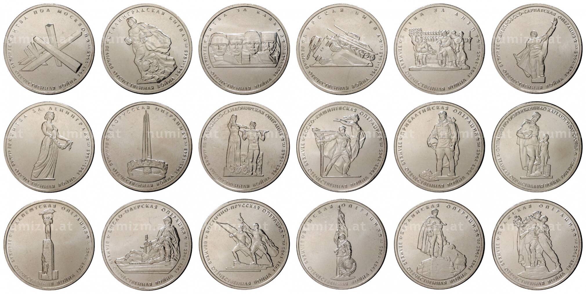 20.01.2025Интернет магазин «Нумизмат» предлагает приобрести Набор монет 5 рублей 2014 года 70 лет Победы в ВОВ.